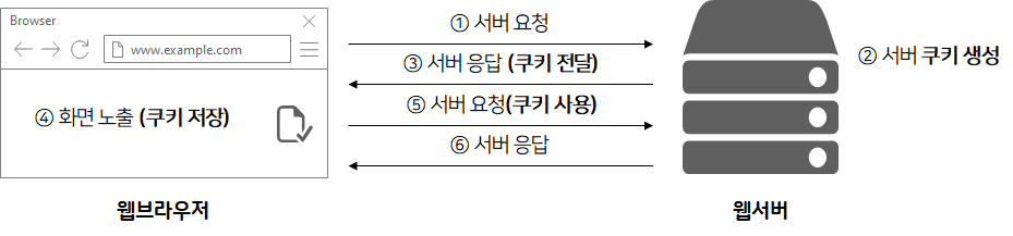 - HTTP 헤더에 쿠키를 포함하여 응답