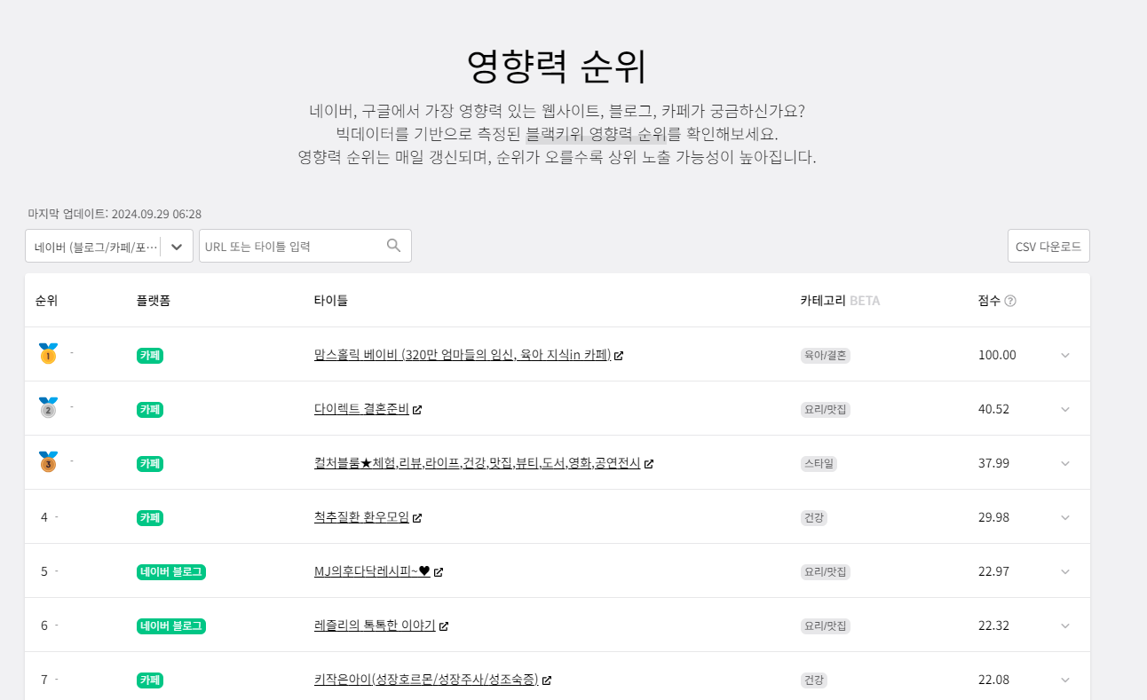 네이버, 구글에서 영향력이 있는지 확인할 수 있는 페이지입니다. 네이버랑 구글을 구분해서 확인할 수 있습니다.